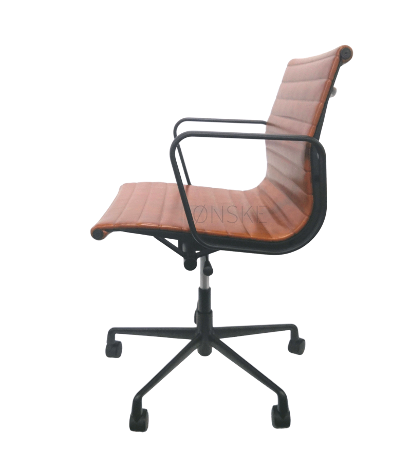 Eames 117 Style Ribbed Leather Office Chair with a Black Frame